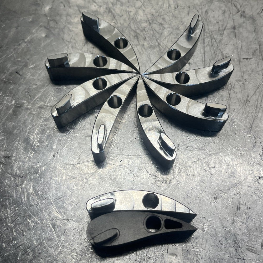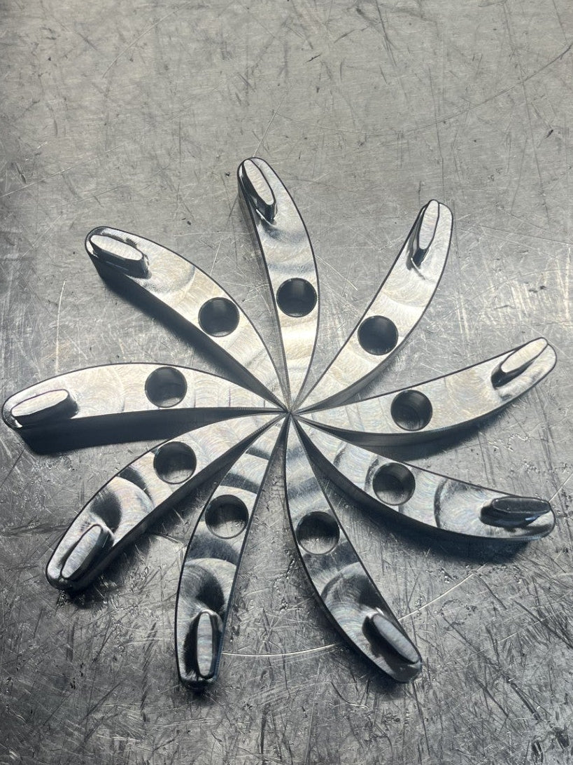 These are our high flow vanes we use in our custom Duramax and Power Stroke turbo builds. These are tried and true and are the highest quality. If you're looking for more flow and want to make the most power possible from your turbo these, are it. Pictured is a comparison between factory and the high flow vanes